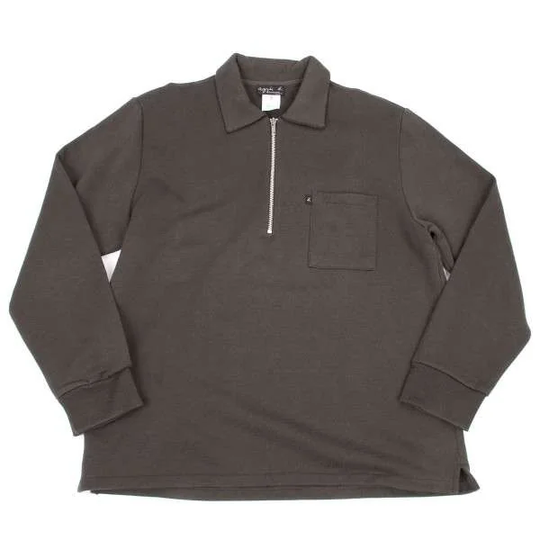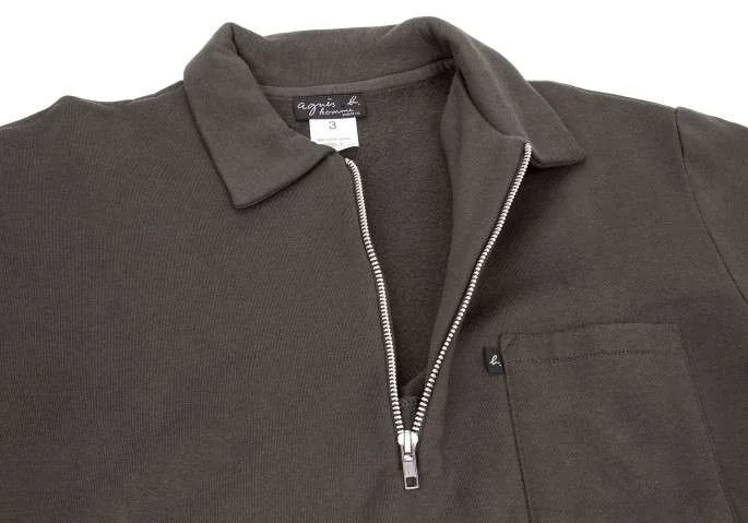 アニエスベー オムagnes b. homme ハーフジップ裏起毛トレーナー カーキグレー3