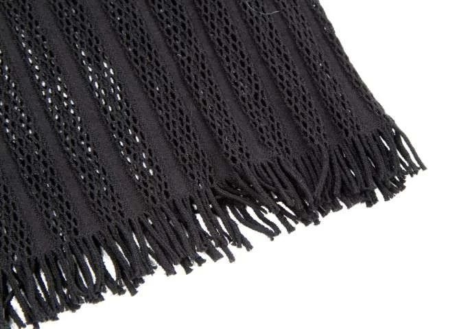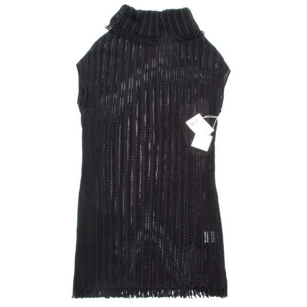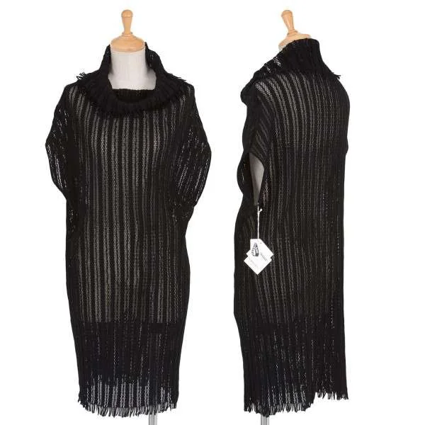 新品!【SALE】新品!イッセイミヤケISSEY MIYAKE A.POCオフタートル透かしフリンジカットソー 黒2