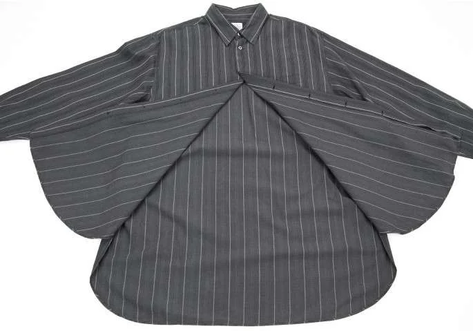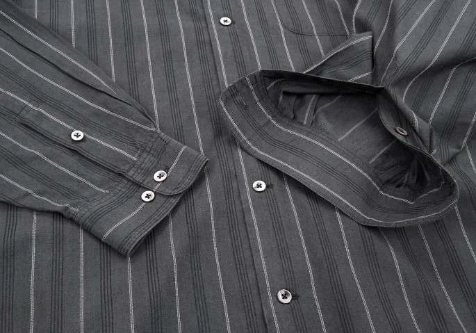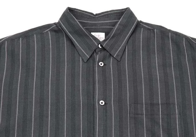 ヨウジヤマモト コスチュームドオム yohji yamamoto COSTUME D' HOMME ストライプコットンシャツ チャコールグレー白L