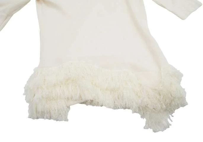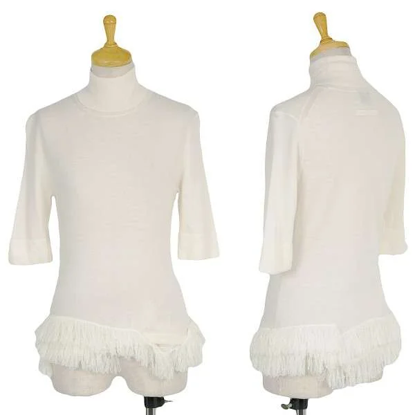 ジャンポールゴルチエ ファムJean Paul GAULTIER FEMME カシミア混コットンループフリンジデザイン半袖ニット オフ40