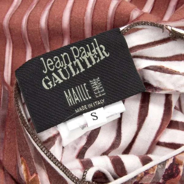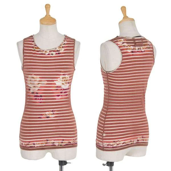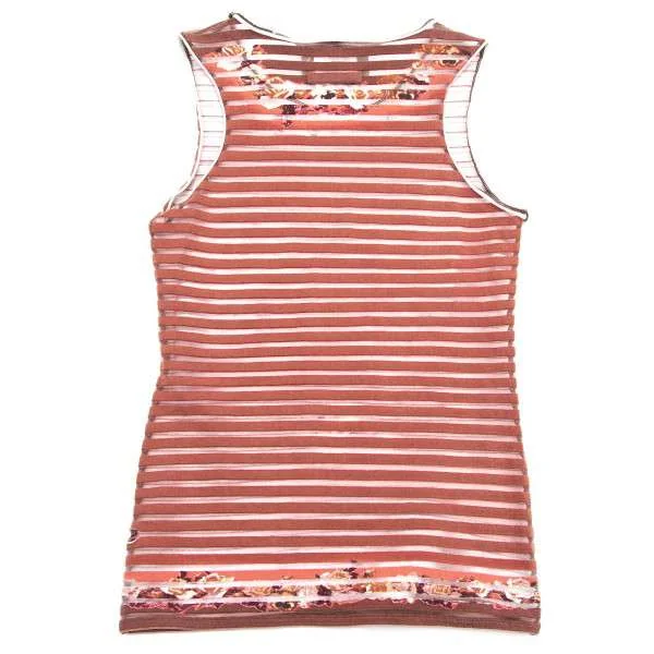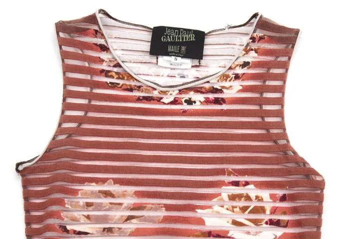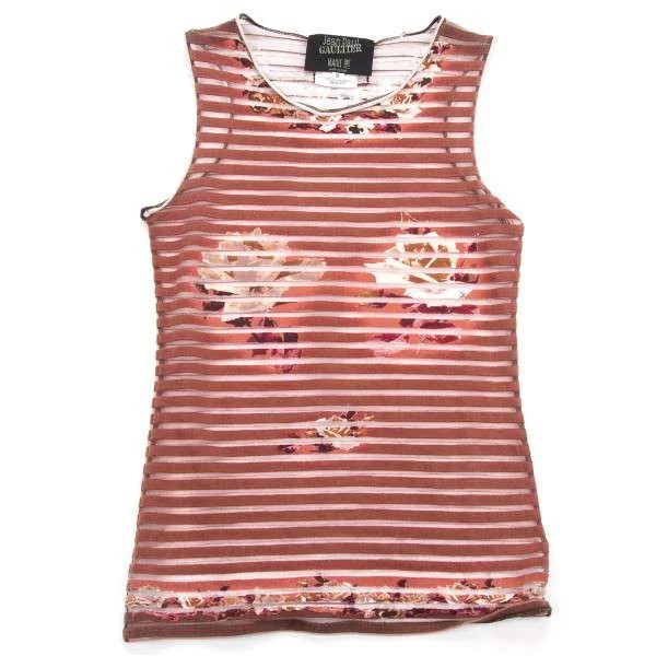 【SALE】ジャンポールゴルチエ マイユJean Paul GAULTIER MAILLE FEMME ボーダーパワーネットフラワープリントタンクトップ 赤茶オフ40