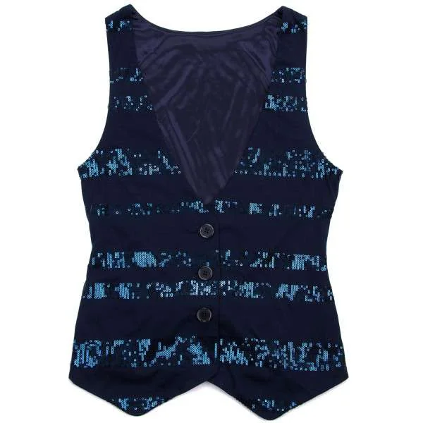 【SALE】グリーンレーベルリラクシングgreen label relaxing スパンコールジレ 紺M位