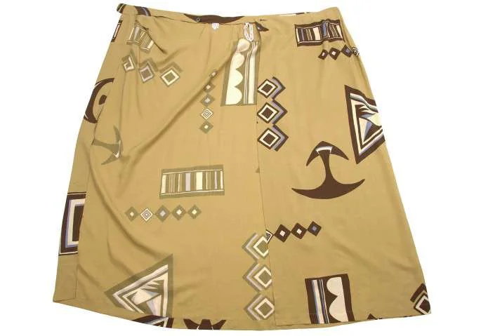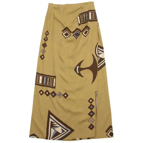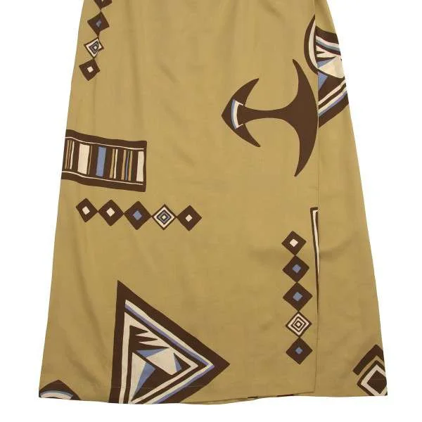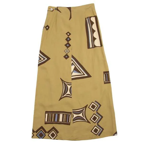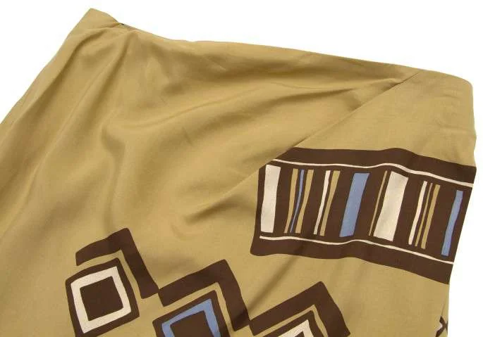 【600SALE】レキップ ヨシエイナバL'EQUIPE yoshie inaba シルク柄デザインラップロングスカート 【返品不可】 ベージュ茶他M位