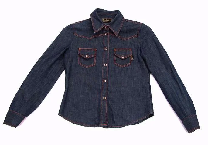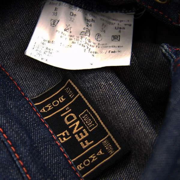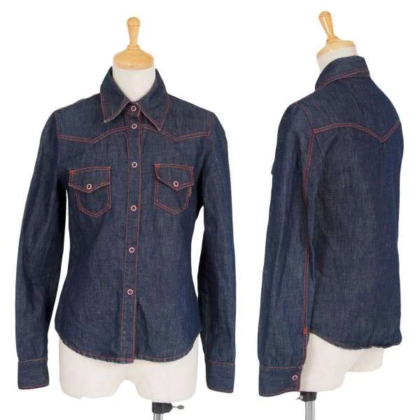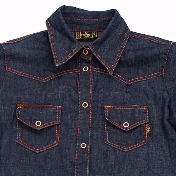 フェンディFENDI ステッチデニムシャツジャケット ブルーピンク38
