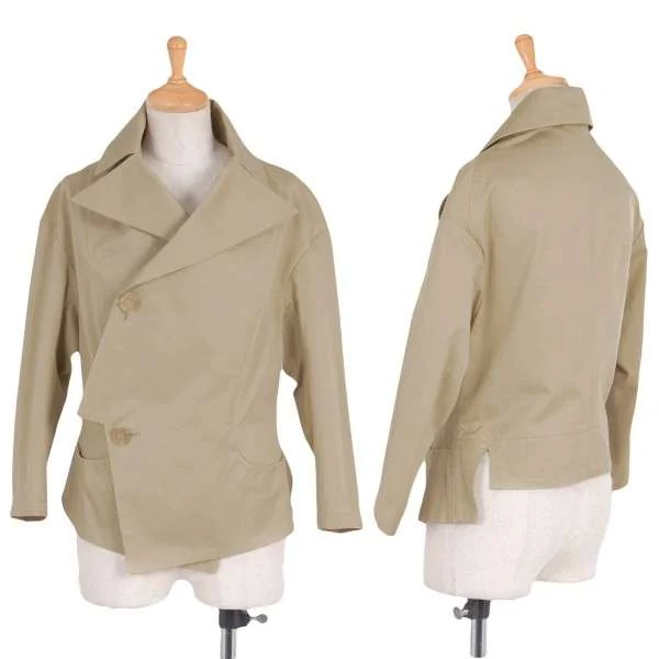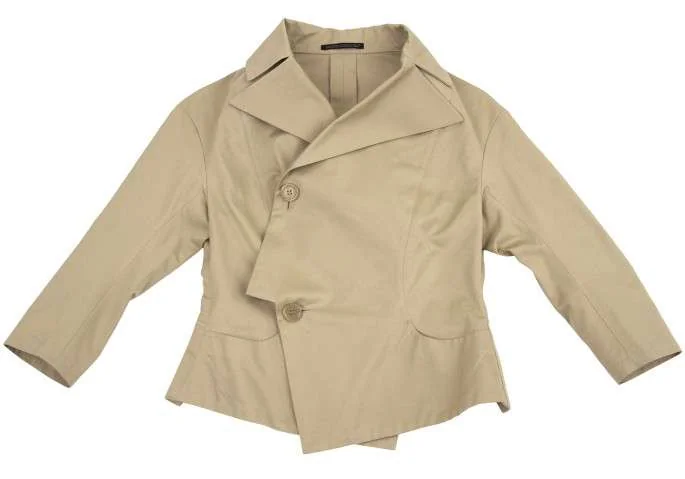 【SALE】ヨウジヤマモト ファムYohji Yamamoto FEMME コットンダブルボタンデザイン七分袖ジャケット ベージュ1