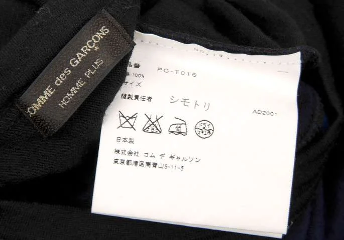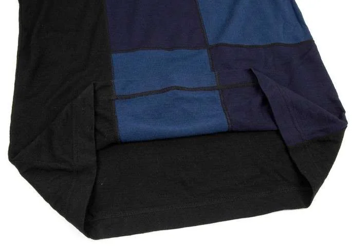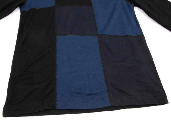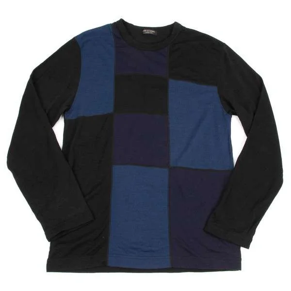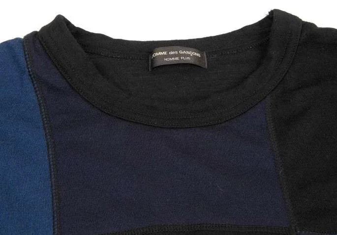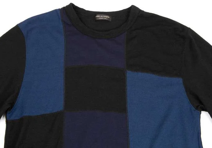 コムデギャルソンオムプリュスCOMME des GARCONS HOMME PLUS ウールパッチワークニットカットソー 黒紺ブルーM位