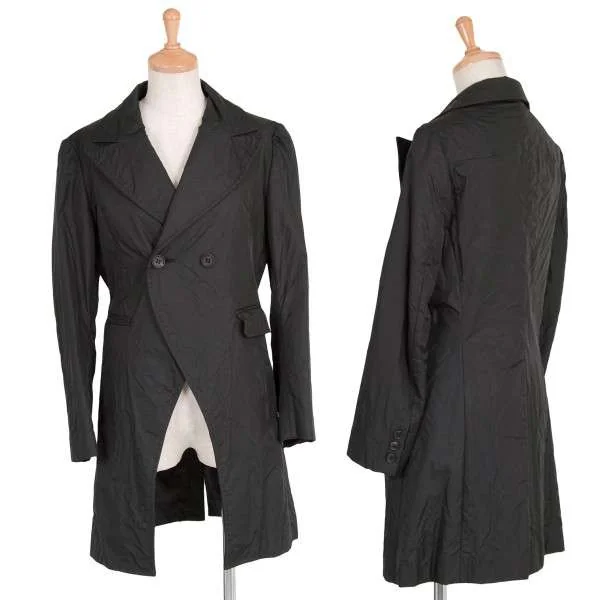 【SALE】ワイズY's ナイロン貼り合わせウールピークドラペルダブルボタンジャケット 黒1