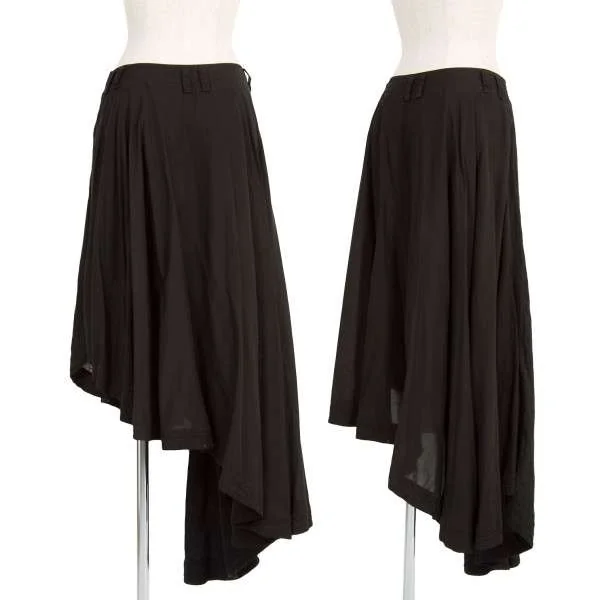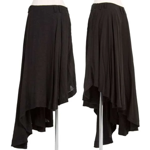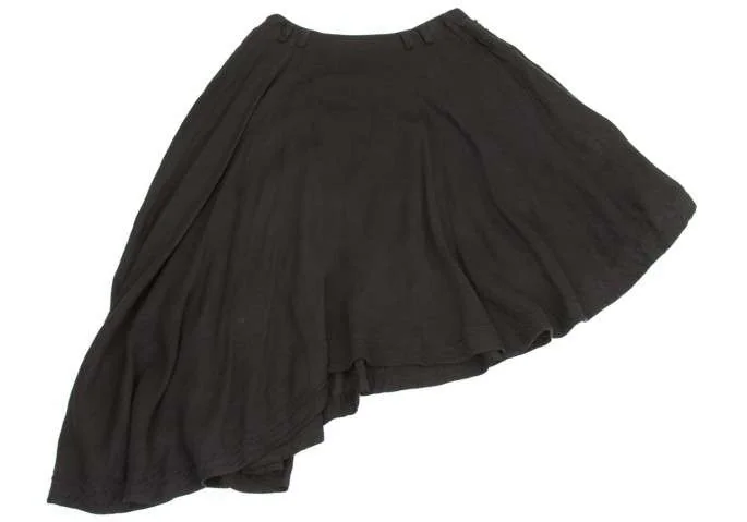 【SALE】ワイズ レッドレーベルY's Red Label 製品染めリネンキュプラ切り替えアシメトリーデザインスカート 黒2