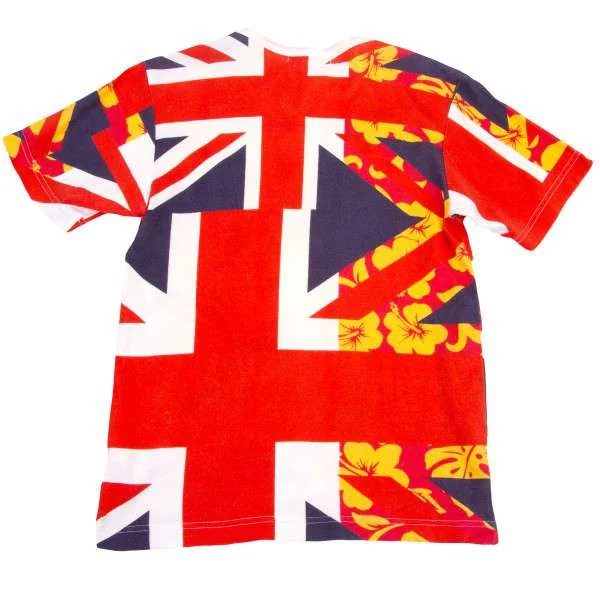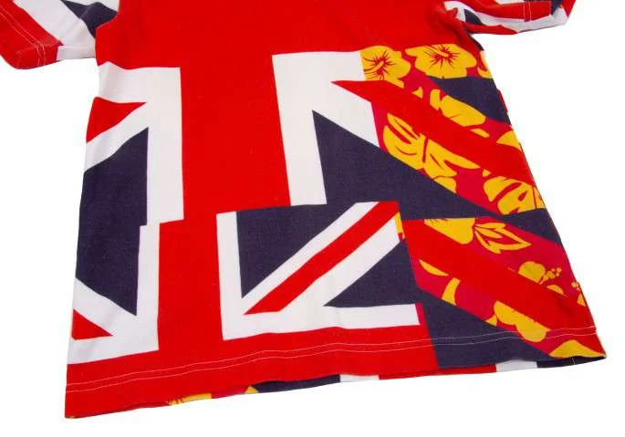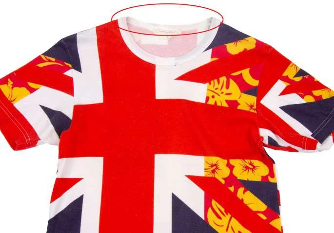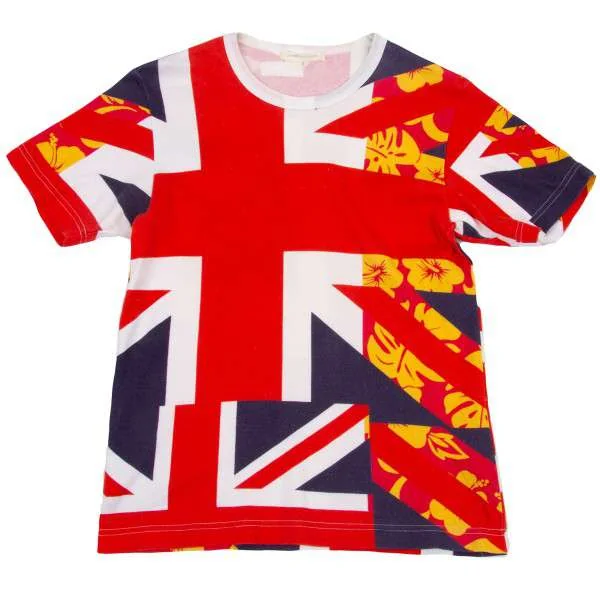 コムデギャルソンCOMME des GARCONS ユニオンジャックハイビスカスプリントTシャツ 白赤紺黄S