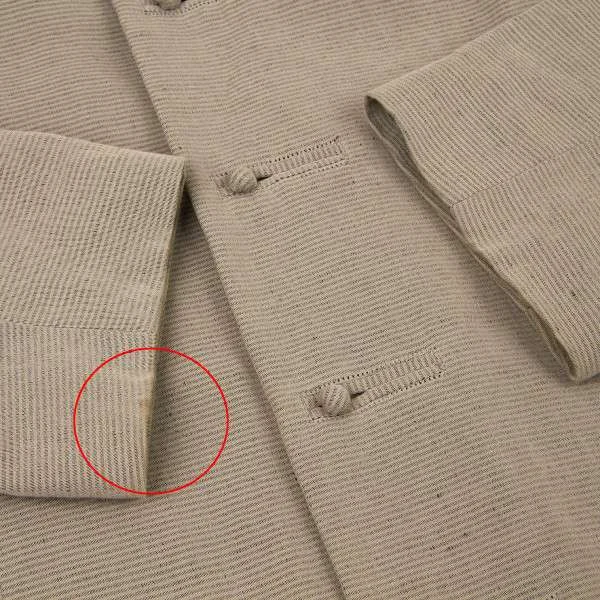 ジャケットの右袖口に汚れあり(写真参照)。その他は目立ったシミ、汚れ、ほつれ等なくいい状態です。クリーニング済み