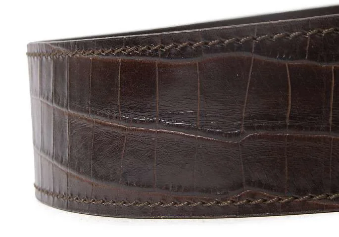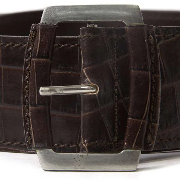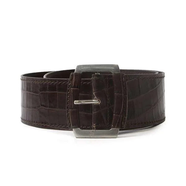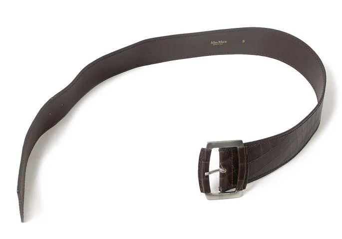 マックスマーラMaxMara クロコダイル型押しレザーベルト こげ茶S