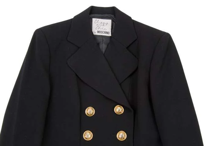 【SALE】モスキーノ チープアンドシックMOSCHINO cheap&chic 金ボタンウールダブルジャケット 黒M位
