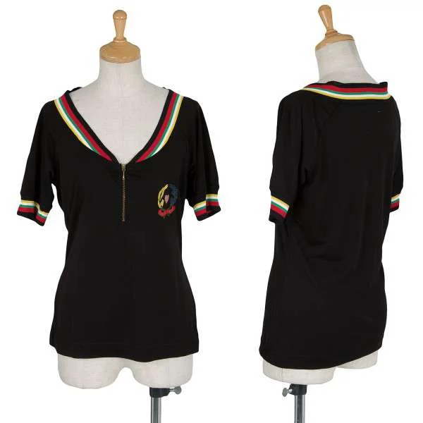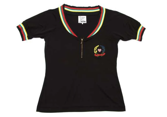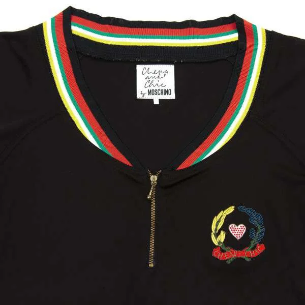 【SALE】モスキーノ チープアンドシックMOSCHINO cheap&chic カラフルラインリブジャージカットソー 黒赤緑他M位