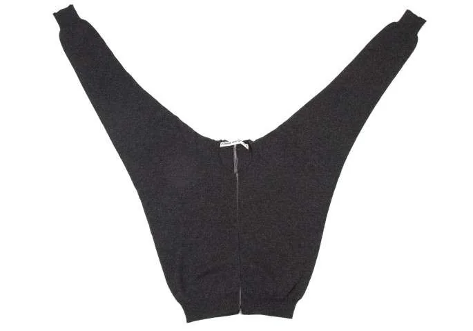 【SALE】コムデギャルソンCOMME des GARCONS ナイロンメッシュ切替ウール変形ニットセーター グレーS〜M位