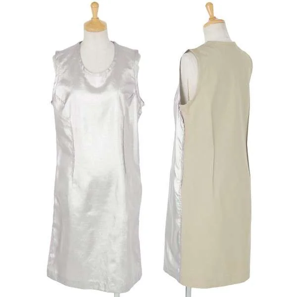 ジュンヤワタナベコムデギャルソンJUNYA WATANABE COMME des GARCONS 切替シャイニーノースリーブワンピース シルバーベージュM位