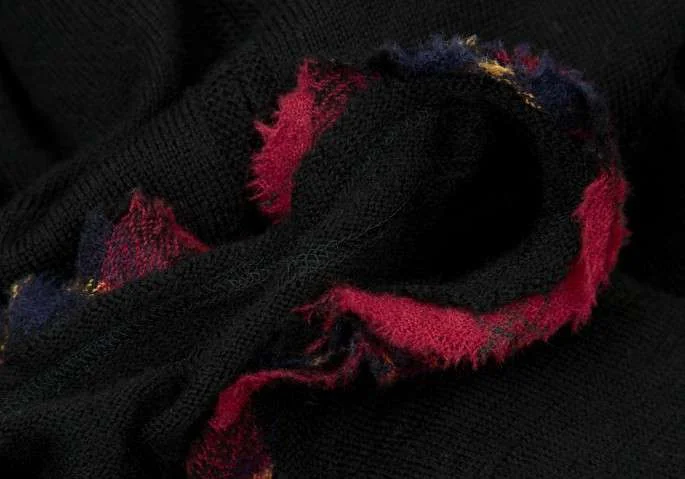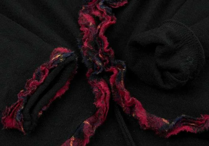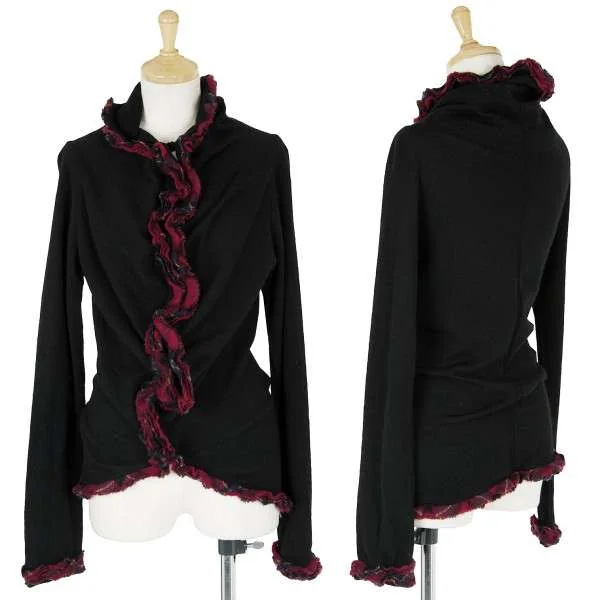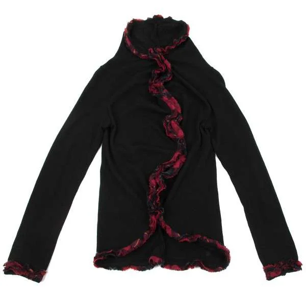 アツロウタヤマA/T ウールチェックフリルカーディガン 黒M位