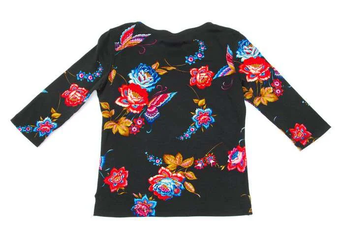 【SALE】ワイズビスリミY's bis LIMI フラワープリント7分袖カットソー 黒S