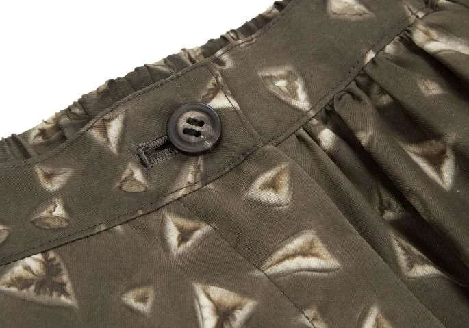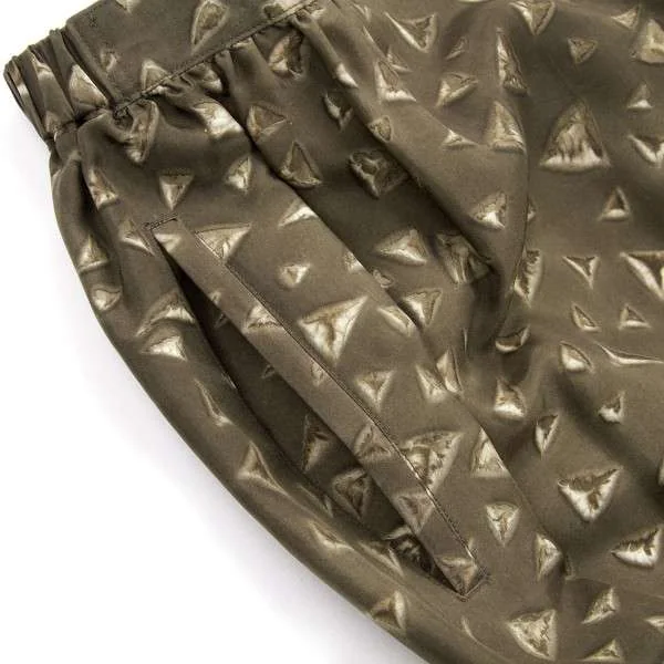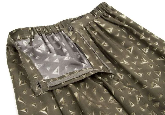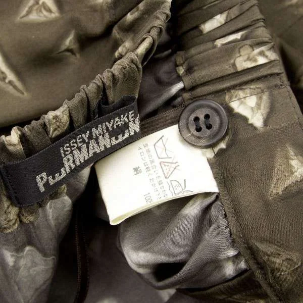イッセイミヤケペルマネンテISSEY MIYAKEPERMANENTE シルクプリント切り替えサルエルパンツ カーキM