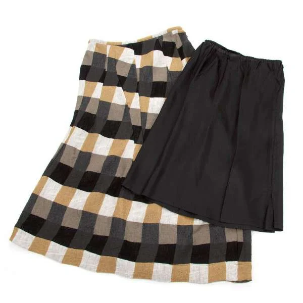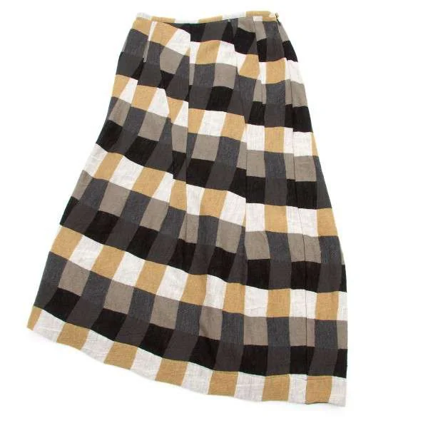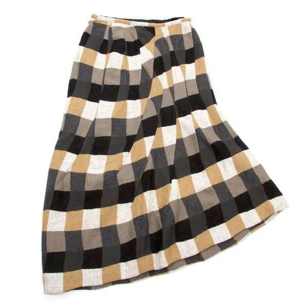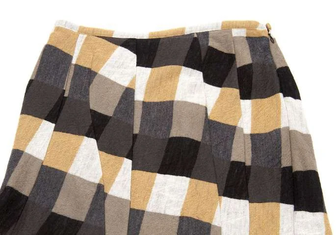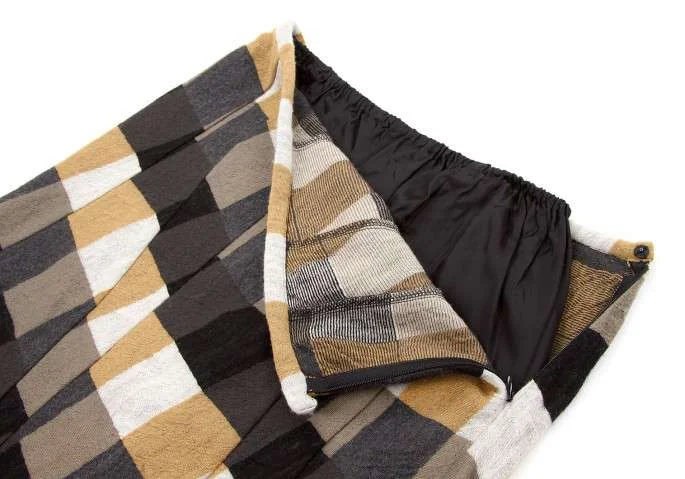 【SALE】ヨウジヤマモト ノアールYohji Yamamoto NOIR ウール市松柄ダーツデザインスカート 黒茶白2