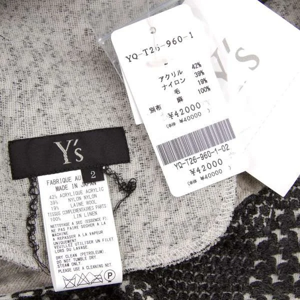 新品!【SALE】新品!ワイズY's ジャガードグレンチェックパンツ チャコール白2