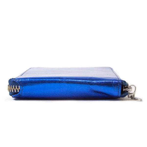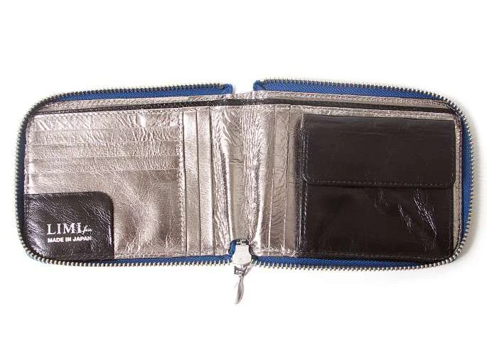 新品!リミフゥLIMIfeu ラウンドファスナー二つ折りウォレット/財布 メタリックブルー