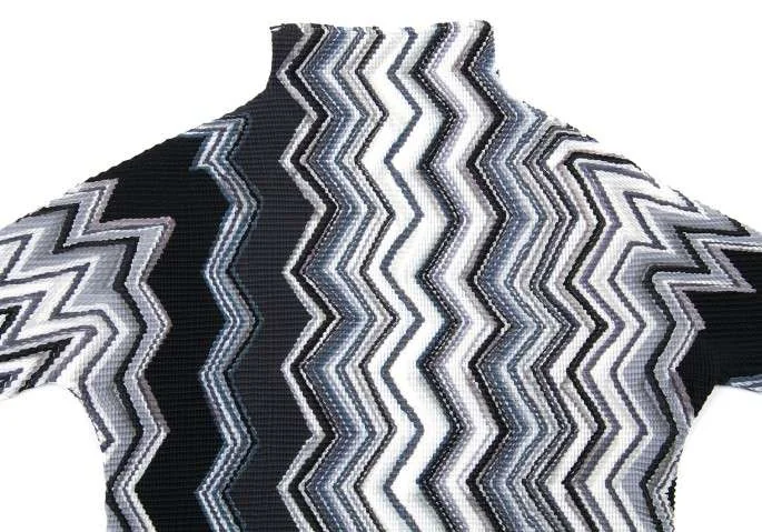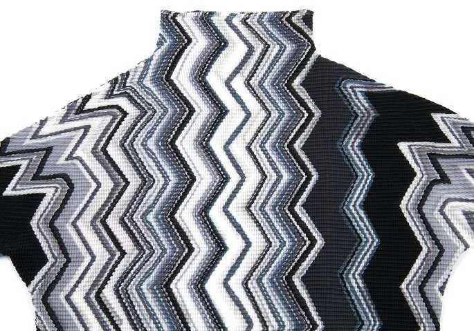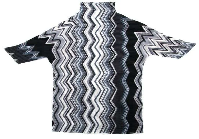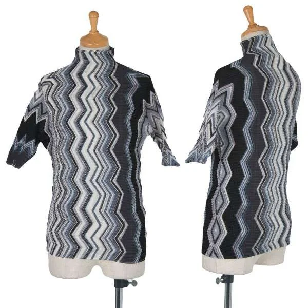 イッセイミヤケISSEY MIYAKE(T) ジグザググラフィックプリーツカットソー 黒グレー白M