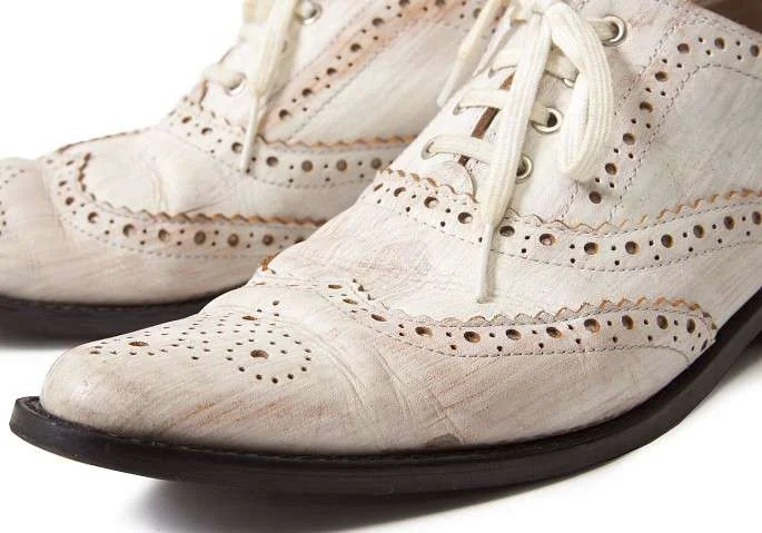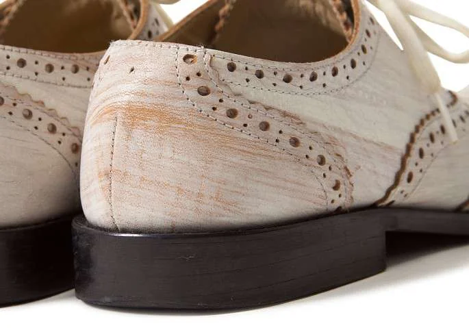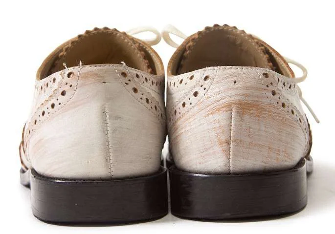 【SALE】トリコ コムデギャルソンtricot COMME des GARCONS かすれペンキデザインウイングチップレザーシューズ 白薄茶22.5