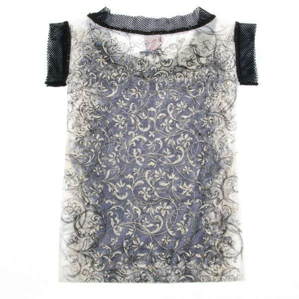 【SALE】ジャンポールゴルチエ ファムJean Paul GAULTIER FEMME パワーネットプリントメッシュ切替トップス ブルー黒他40