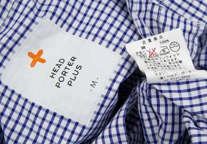 【SALE】ヘッドポータープラスHEAD PORTER PLUS プリーツチェック長袖シャツ 青白M