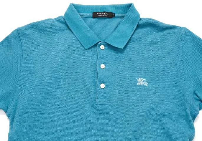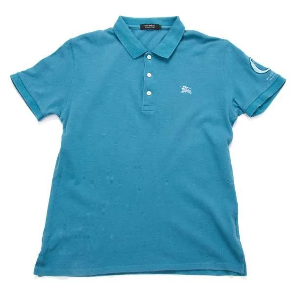 バーバリーブラックレーベルBURBERRY BLACK LABEL Cワッペン鹿の子ポロシャツ 青2