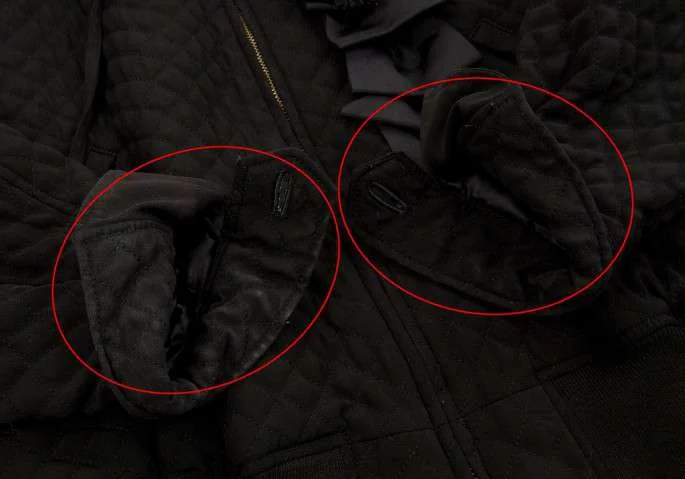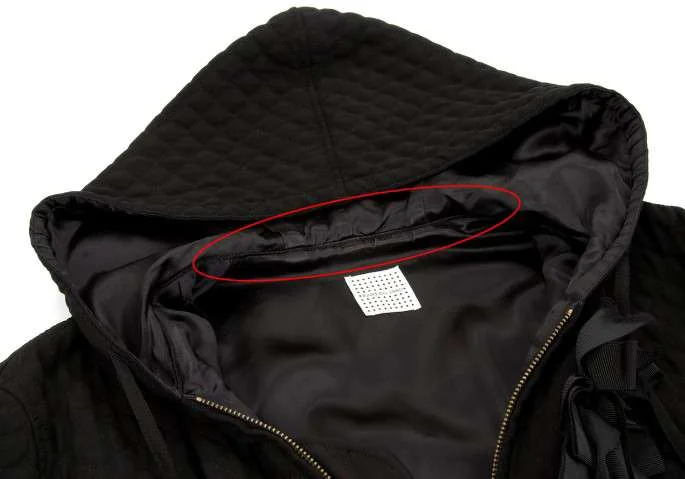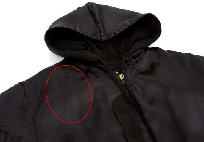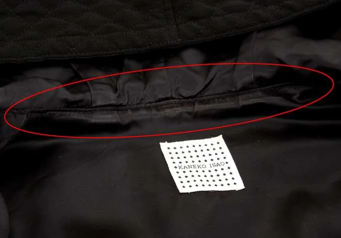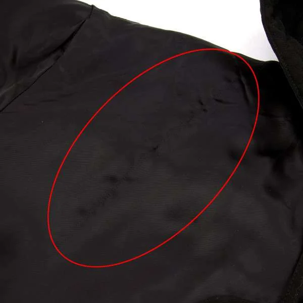 襟裏、袖口、袖口裏に着用跡あり。左前身頃裏地に糸引きあり(写真参照)。その他は目立ったシミ、汚れ、ほつれ等ありません。