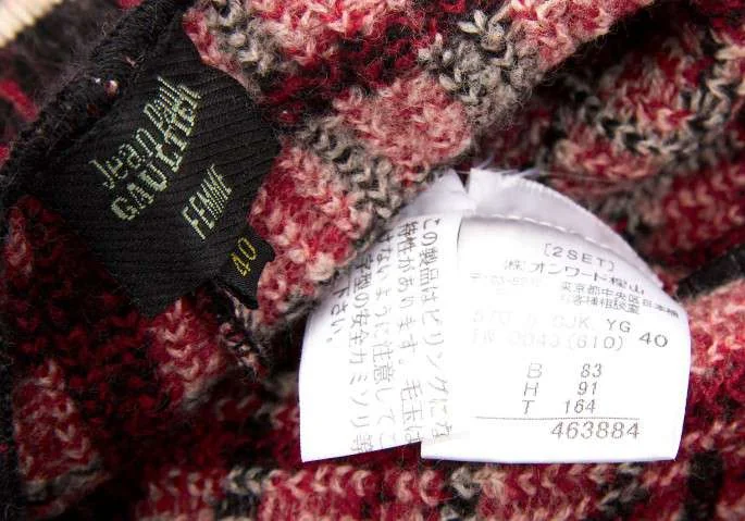 ジャンポールゴルチエファムJean Paul GAULTIER FEMME ウールデザインチェックセットアップスーツ 黒赤白40