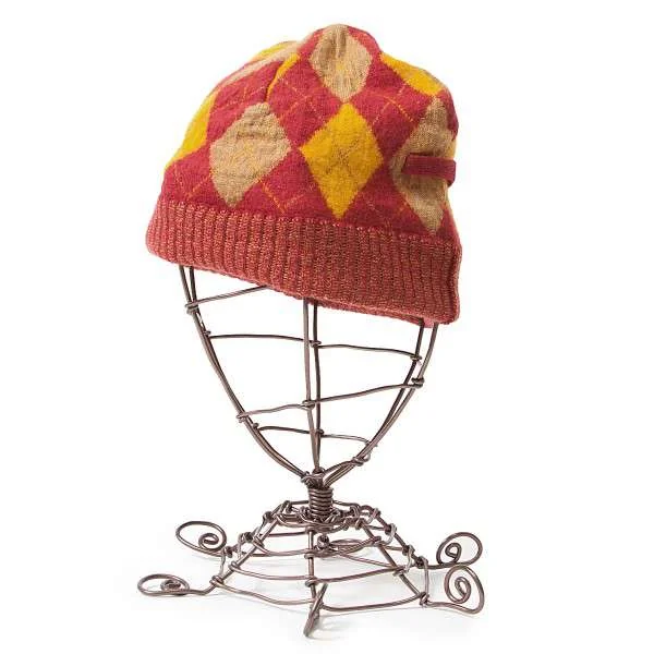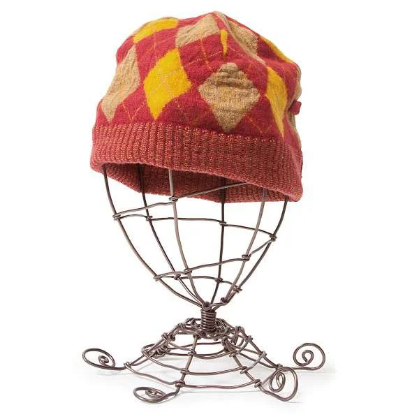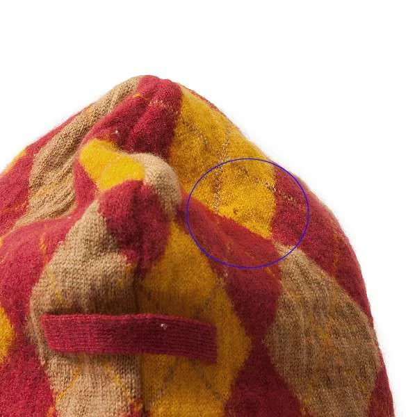 ジャンポールゴルチエファムJean Paul GAULTIER FEMME アーガイルデザインニットキャップ オレンジ赤