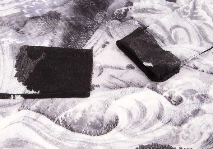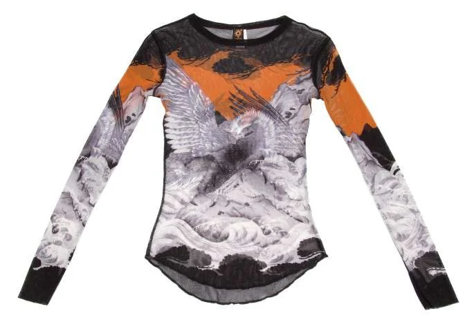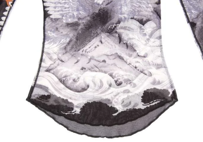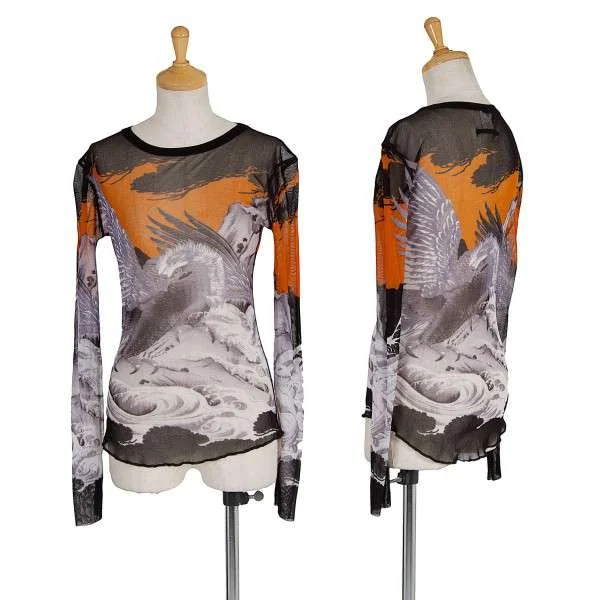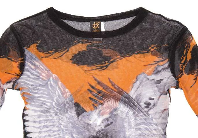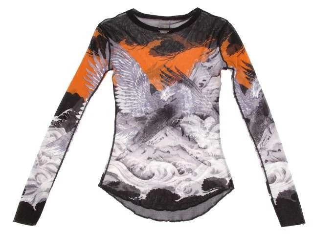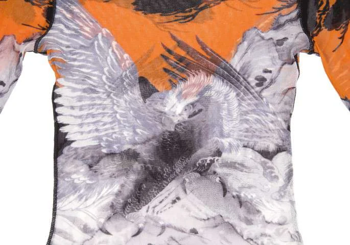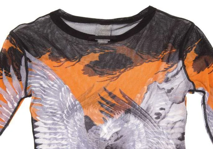 ジャンポールゴルチエ ソレイユJean Paul GAULTIER SLEIL 鷹プリントデザインパワーネット長袖カットソー 黒グレーM