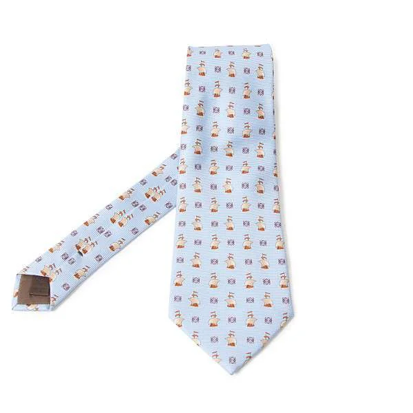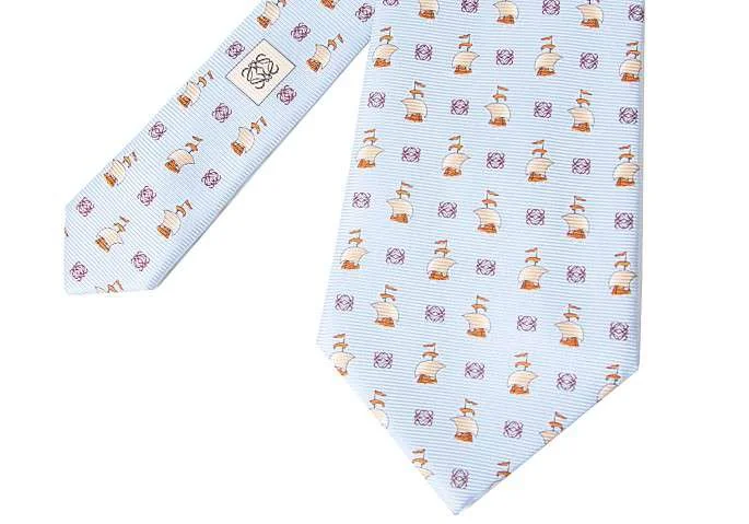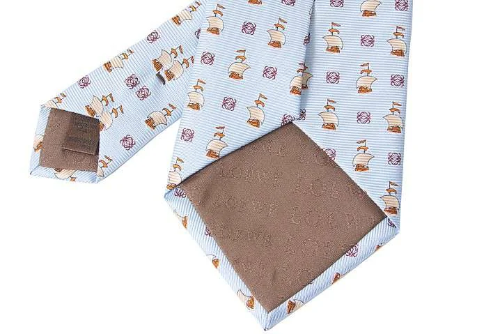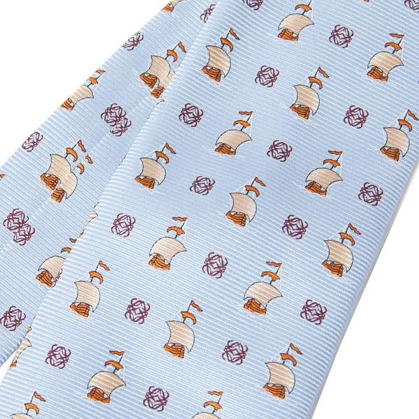 新品!ロエベLOEWE ヨット柄デザインネクタイ スカイブルー