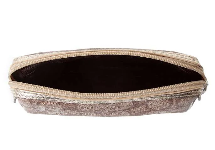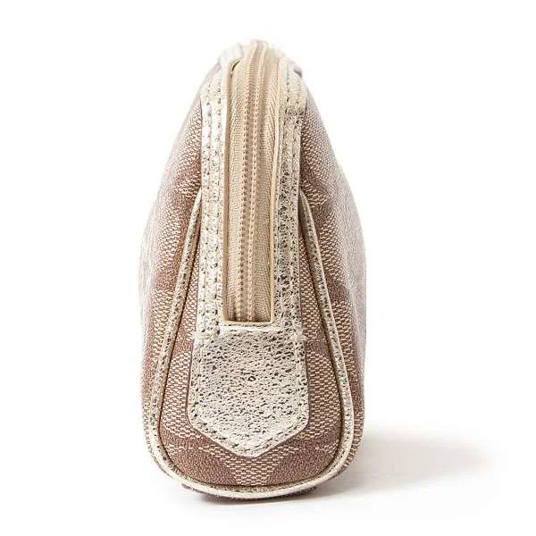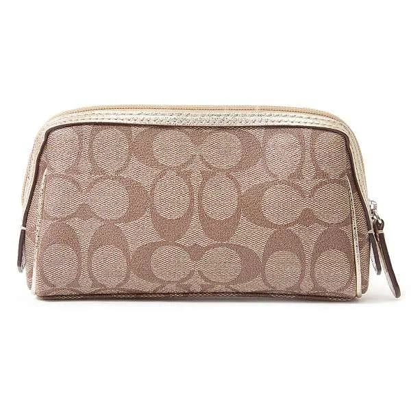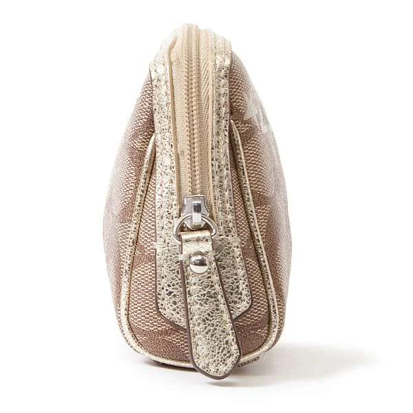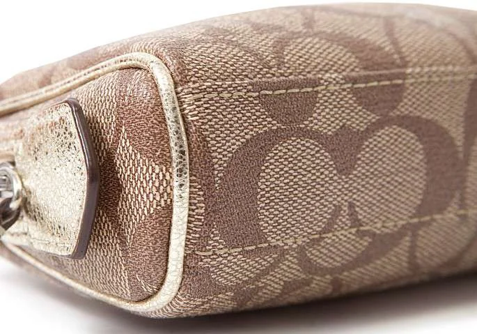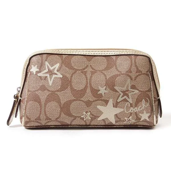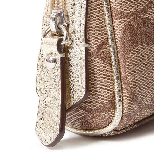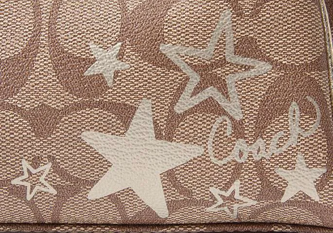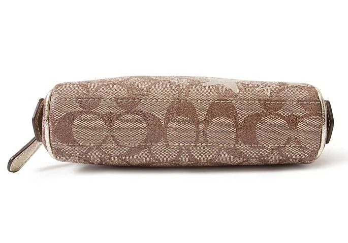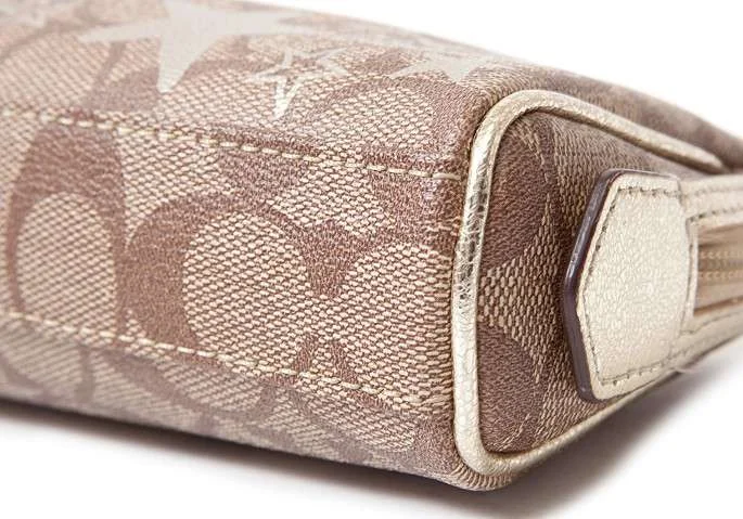 コーチCOACH スタープリントシグネチャーミニポーチ ゴールド茶
