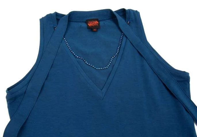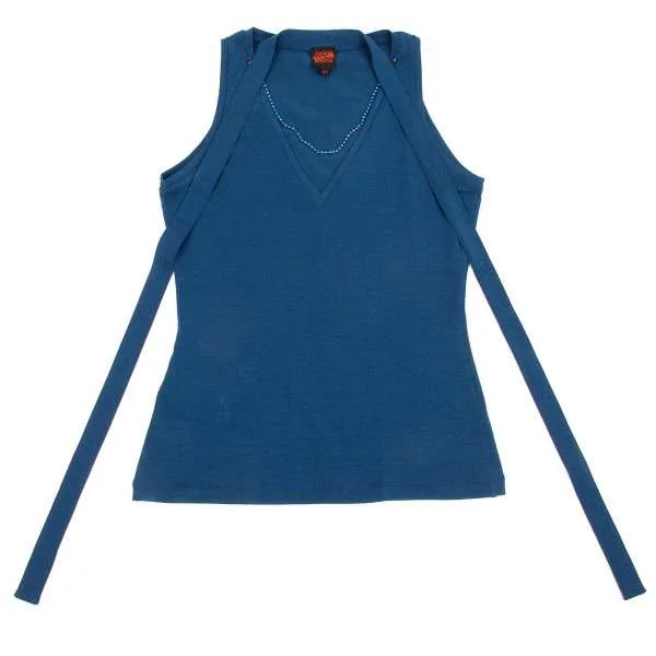 【SALE】ジャンポールゴルチエJean Paul GAULTIER ネックレスデザインノースリーブトップス 青40