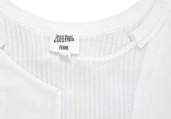 ジャンポールゴルチエファムJean Paul GAULTIER FEMME リブメッシュ切替コットントップス 白  白40
