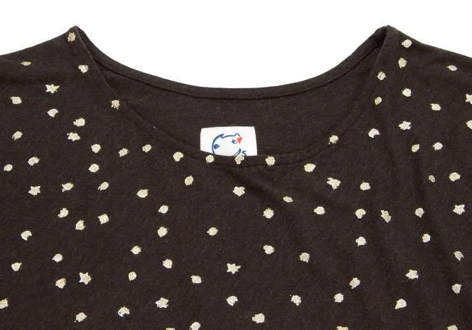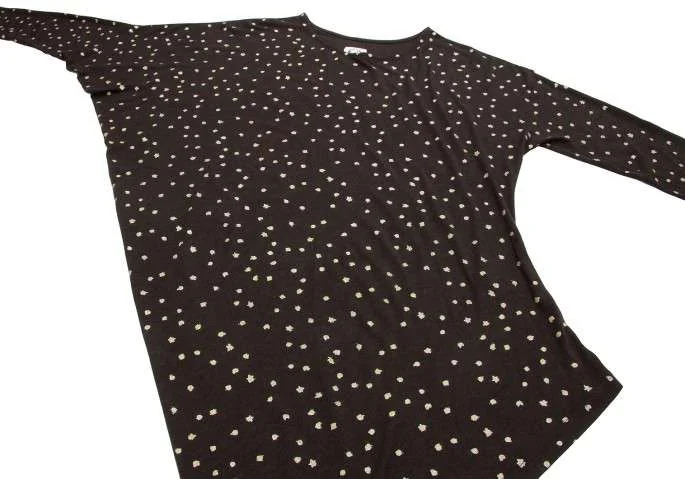 【SALE】ツモリチサトTSUMORI CHISATO ラメプリントオフショルダーチュニックカットソー 茶ゴールド2