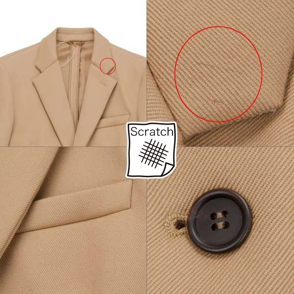 ジャケット:上襟の左側、後ろにキズあり。裏地に薄シミあり。 パンツ:左前、後ろウエストにキズあり(写真参照)。その他は目立ったシミ、汚れ、ほつれ等なくいい状態です。