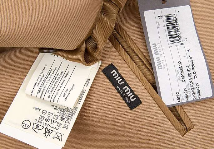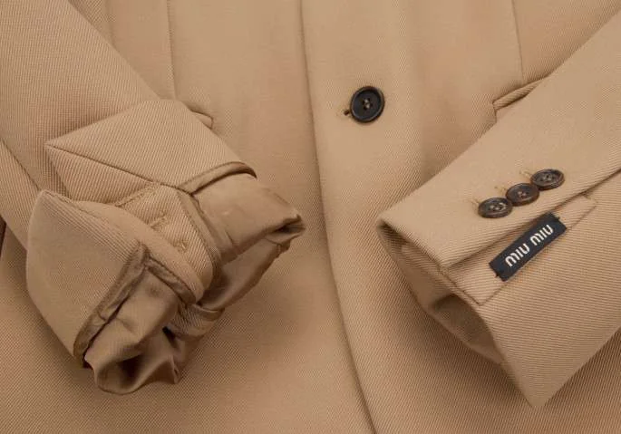 【SALE】新品ですが・・・!ミュウミュウmiumiu 中綿ボンディング2Bウールセットアップスーツ キャメル48