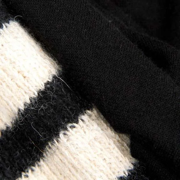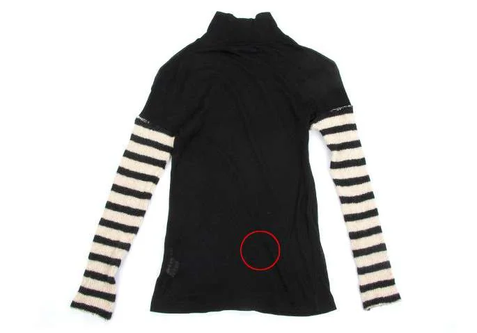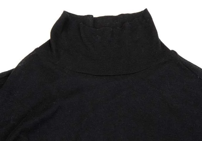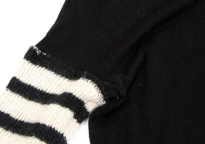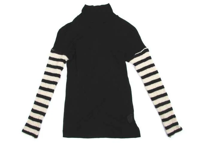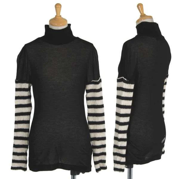 ヨウジヤマモトファムYohji Yamamoto FEMME ボーダーニット袖タートルカットソー 黒生成り2