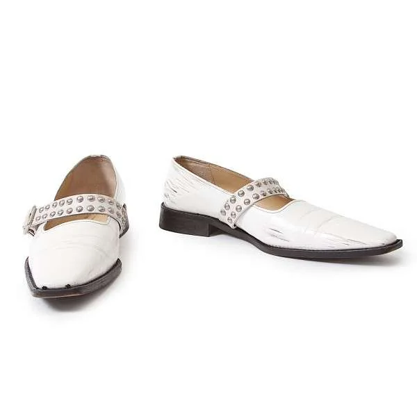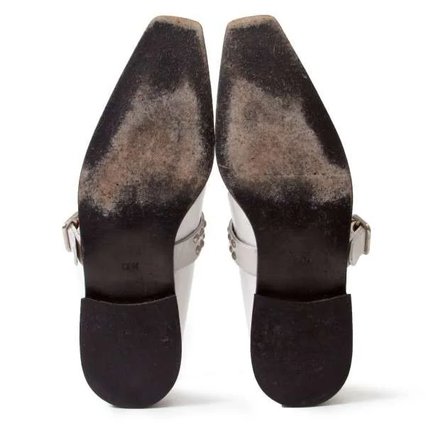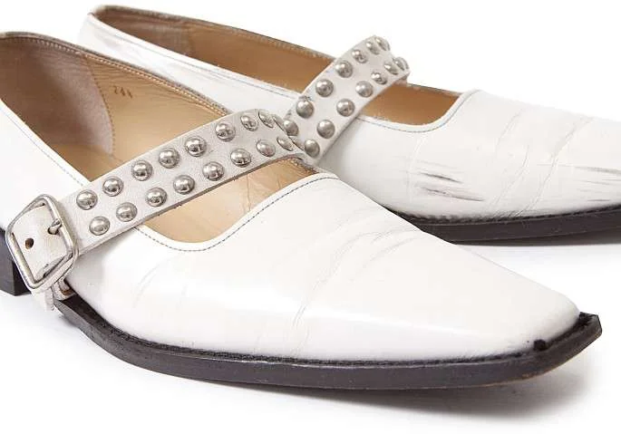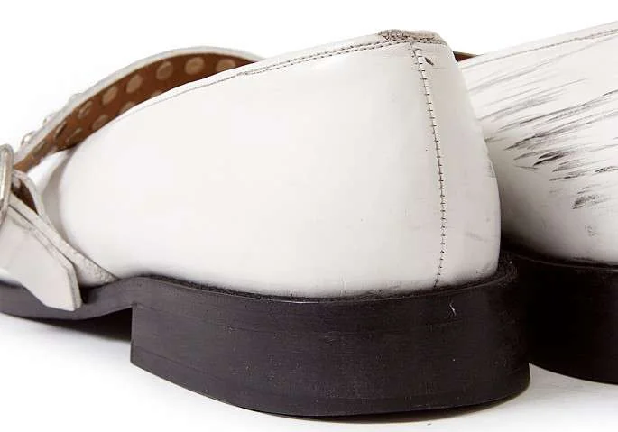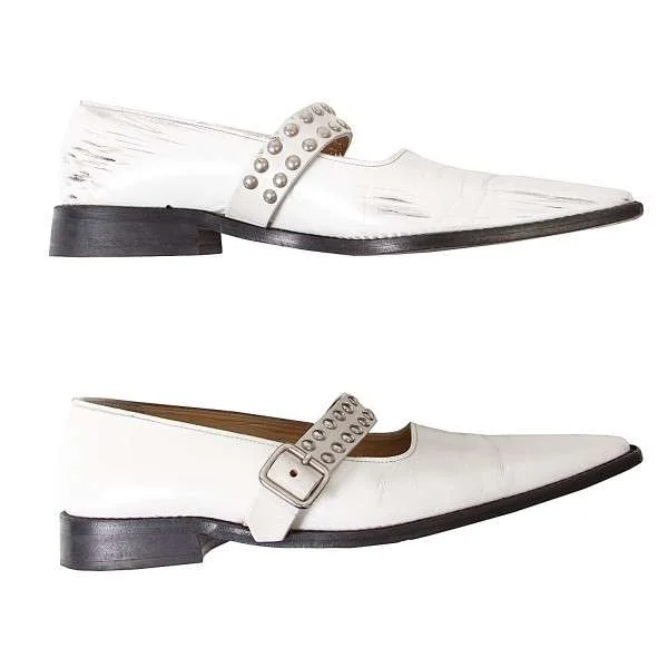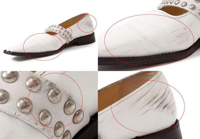 コムデギャルソンCOMME des GARCONS スタッズベルトレザーシューズ 白シルバー24.5