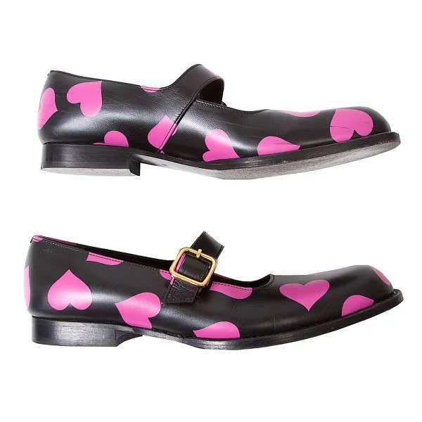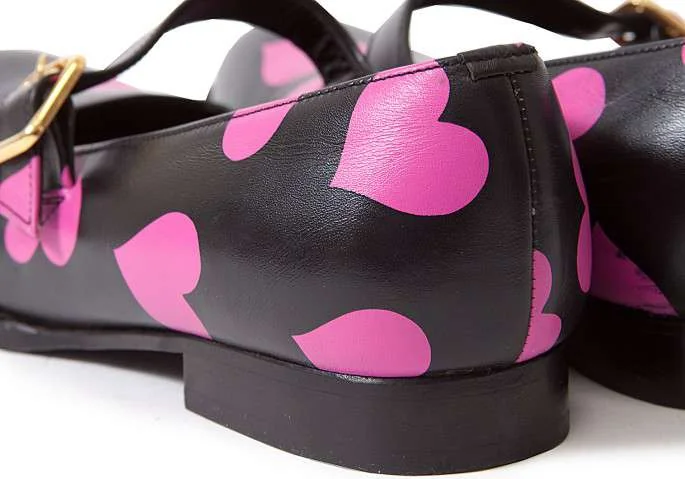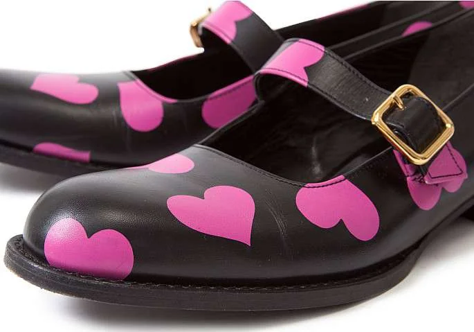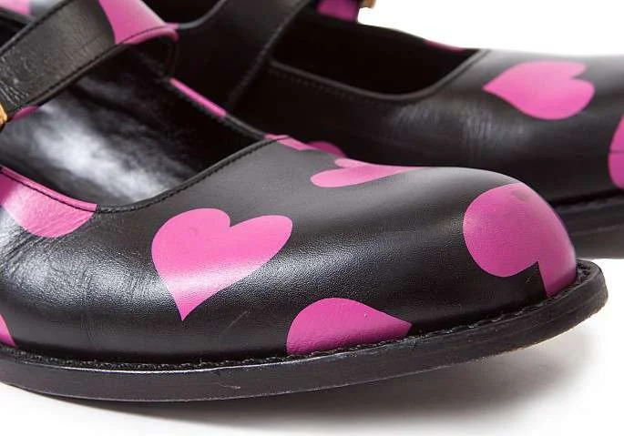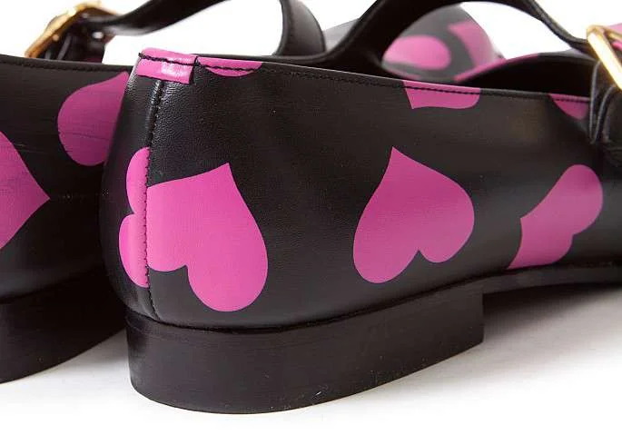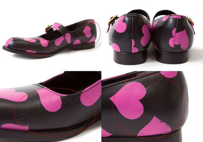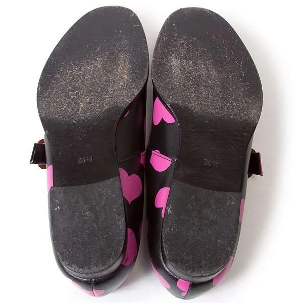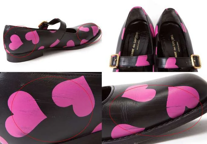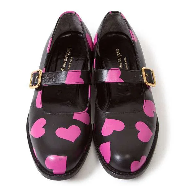 コムデギャルソンCOMME des GARCONS ハート柄レザーシューズ 黒ピンク24.5