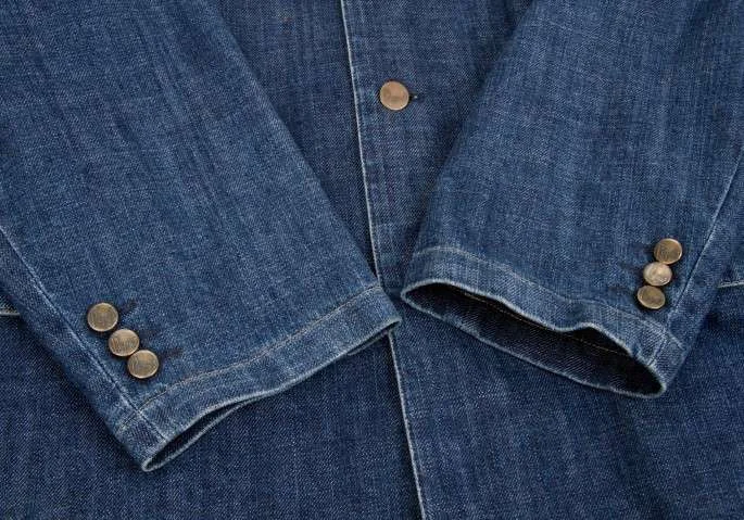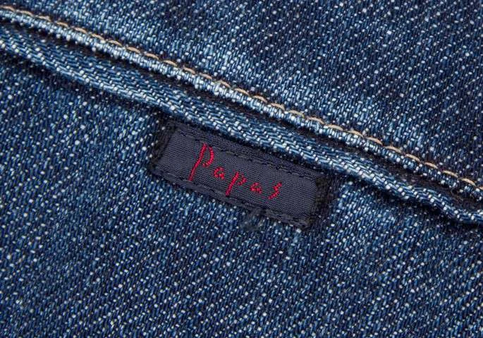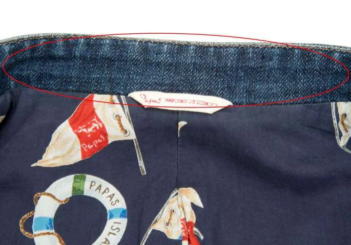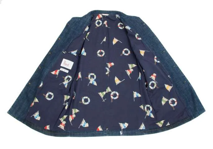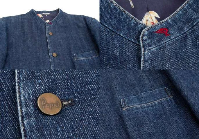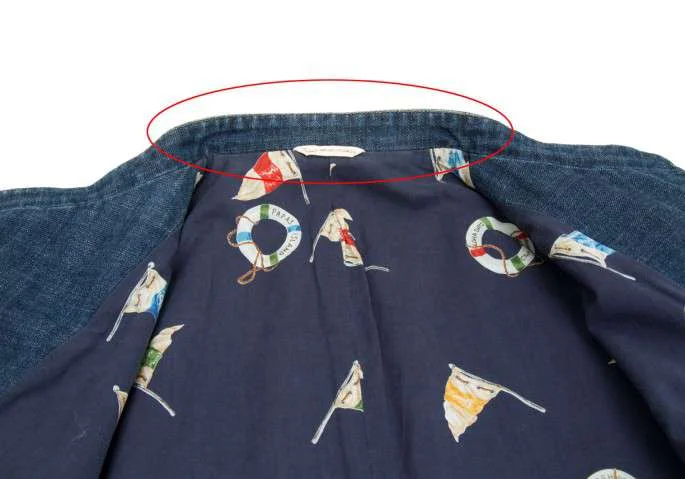 パパスPapas ノーカラーデニム裏地マリンデザインジャケット インディゴブルー50/L