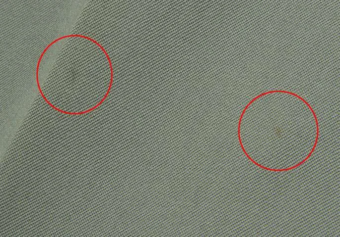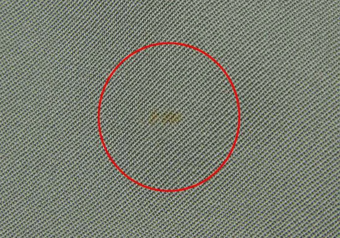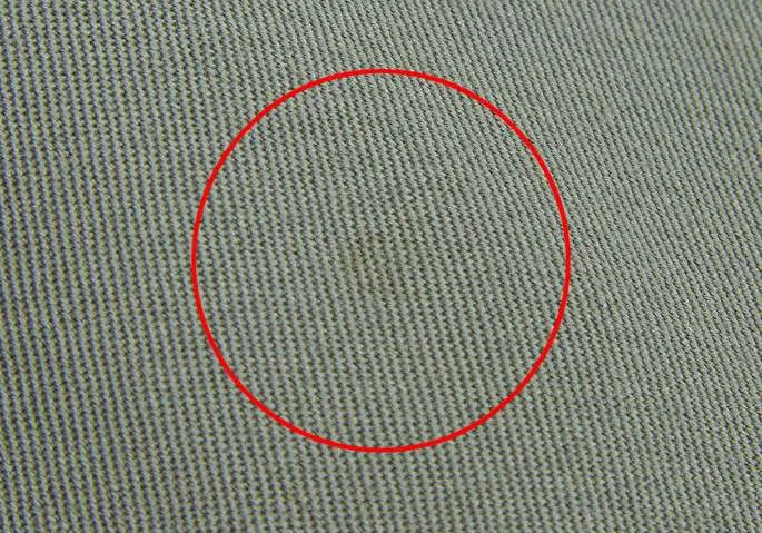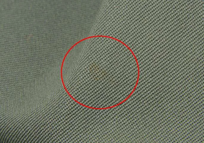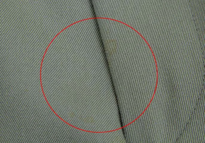 身頃にシミ多数あり(写真参照)。センターに薄っすらとヤケあり。