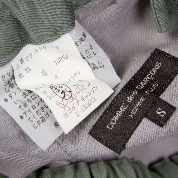 コムデギャルソンオムプリュスCOMME des GARCONS HOMME PLUS ウールギャバウエストゴムパンツ モスグリーンS