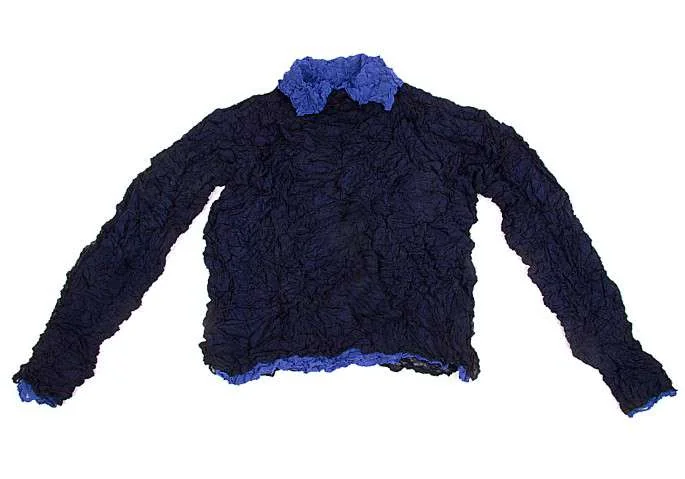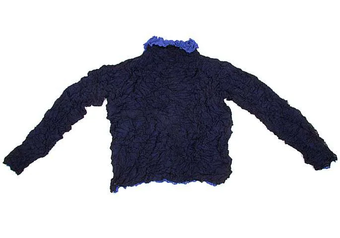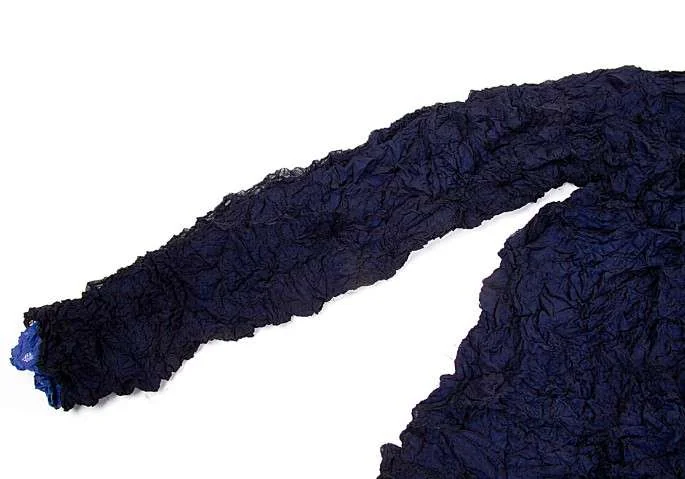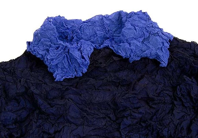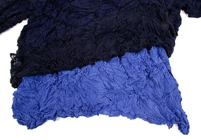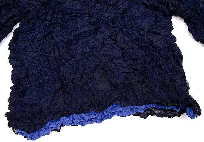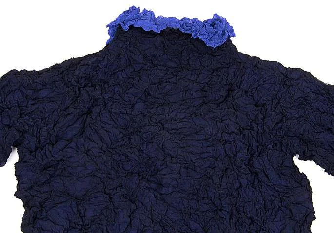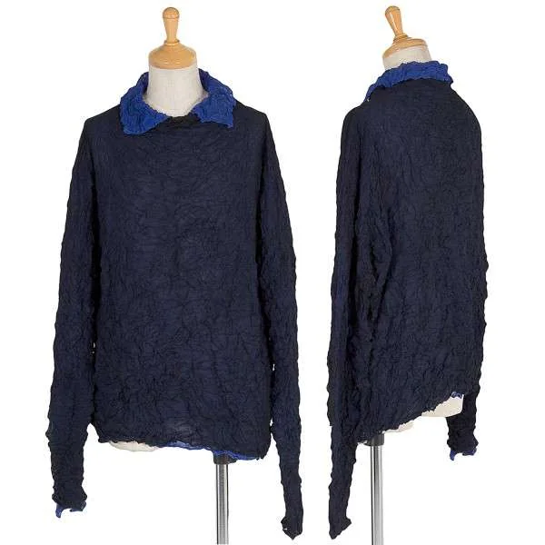イッセイミヤケペルマネンテISSEY MIYAKE PERMANENTE シワ加工レイヤーデザイン長袖カットソー 紺ブルーM位