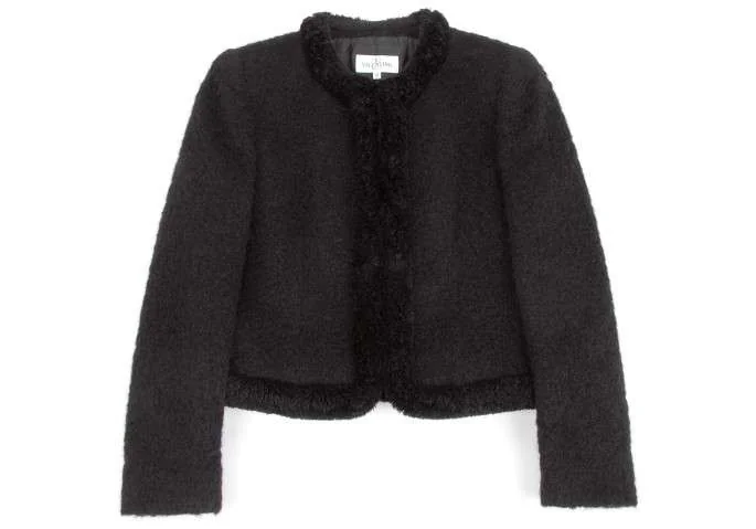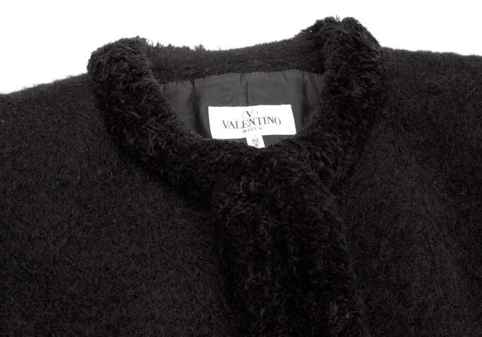 ヴァレンチノVALENTINO MISS V アンゴラ混ノーカラージャケット 黒40