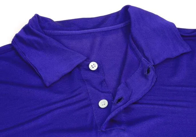 【SALE】ローブドシャンブル コムデギャルソン製品染めストレッチレーヨンポロシャツ 青M位